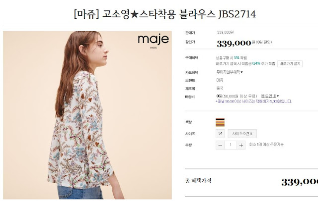 한국 직배송비 포함 21만원. 얼마전 샵스프링스 세일때 보다는 약간 비싸지만 요즘 완전 유행이니 필요하신 분들 득템하세요. 요 블라우스는 윰블리처럼 한 사이즈 업해서 약간 루즈하게 입는 게 이뻐요.